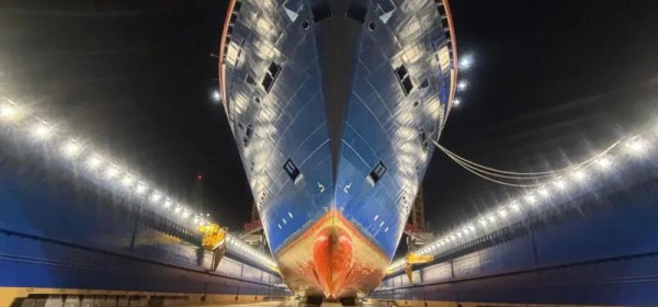 De Disney Fantasy krijgt een nieuwe bolvormige boeg tijdens haar verblijf op de Damen Shiprepair-werf in Brest, Frankrijk. Volgens berichten in de Franse media is