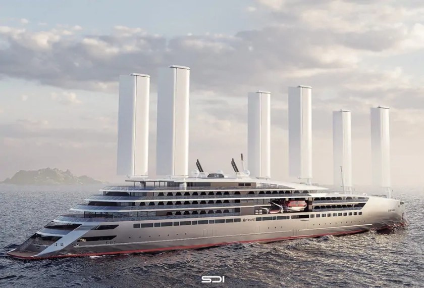 De luxe rederij Ponant heeft voor 2030 een volledig CO₂-neutraal zeilend cruiseschip aangekondigd. Het gedetailleerde concept voor het project met de werknaam “Swap2Zero” moet nu worden ontwikkeld door een onderzoeks- en ontwikkelingsteam in samenwerking met het scheepsarchitectenbureau Stirling Design International. Er wordt onder andere gebruik gemaakt van zeilen, fotovoltaïsche cellen en brandstofcellen. 50 procent van de voortstuwingsenergie voor het innovatieve cruiseschip moet uit windenergie worden gehaald. Volgens Ponant is nog niet besloten welke zeiltechniek ingezet gaat worden. Blijkbaar zijn de systemen van de fabrikanten Ayro Oceanwings en Solid Sail in de running. Ontwerp diepgang met zeiltechniek van Solid Sail