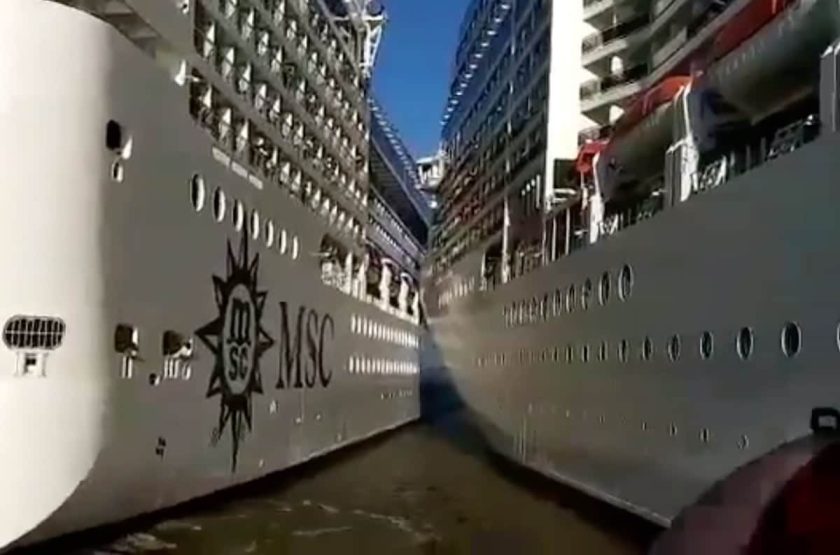 Vandaag heeft in de haven van Buenos Aires en botsing plaatshevonden van de MSC Poesia en de haven verlatende MSC Orchestra. De MSC Orchestra nam bij het verlaten van de haven de bocht te krap en schampte de boeg van de MSC Poesia. Daarbij heeft de MSC Orchestra het boegluik meegenomen.(zoals dat ook in de video te zien is) momenteel licht de MSC Orchestra in Punta del Este en de MSC Poesia nog steeds in Buenos Aires. Niemand schijnt gewond te zijn en de schade zal niet groter zijn dan en paar krassen.