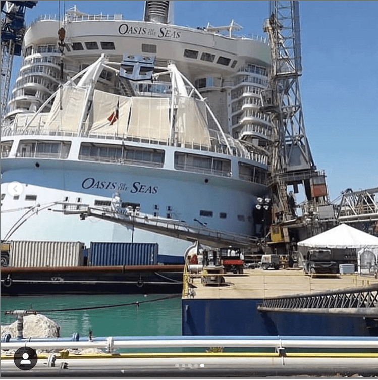 Maandagmiddag is in Freeport op de Bahama’s , bij werkzaamheden bij de Oasis of the seas en Kraan op het achterdek gevallen. De kraan is in het midden van het Aqua Theater gevallen.