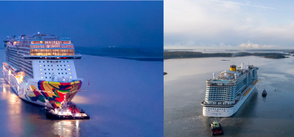 Momenteel vaart de Norwegian Encore weer naar Emshaven, terwijl de Costa Smeralda met vertraging de Meyer Turku in Finnland. De Norwegian Encore is op weg
