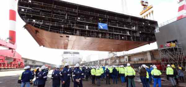 Vandaag begint de bouw van het 249e schip van de Cunard-vloot op de Fincantieri-scheepswerf in Castellammare di Stabia, Italië. – Het eerste stuk staal wordt