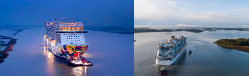 Momenteel vaart de Norwegian Encore weer naar Emshaven, terwijl de Costa Smeralda met vertraging de Meyer Turku in Finnland.