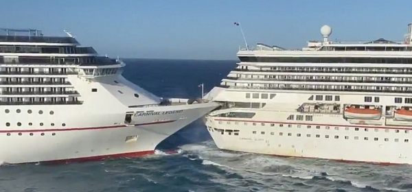 De Carnival Glory is met de achtersteven tegen de boeg van de Carnival Legend aan is gebotst. De Glory kwam vanmiddag in Cozumel aan