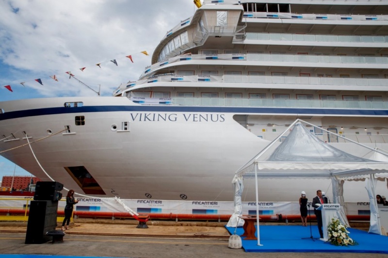 De Viking Venus, het zevende schip voor de serie oceaanschepen van Viking, werd vandaag bij Fincantieri in Ancona ter water gelaten.