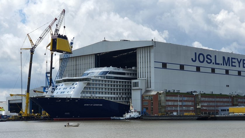 Vandaag is bij de Meyer Werf de Spirit of Adventure uit de bouwhall gehaald.