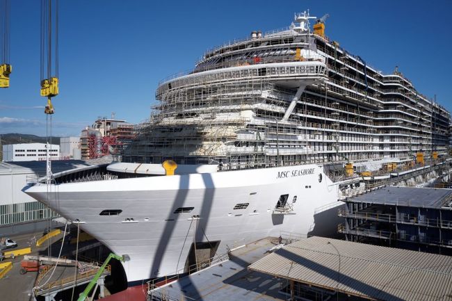 De MSC Seashore, die met 339 meter het langste schip van het bedrijf zal zijn en het grootste en meest innovatieve schip ooit in Italië is gebouwd, is nu tot haar oplevering in juli 2021 naar een nat dok verplaatst om werk aan haar interieur mogelijk te maken, volgens een persbericht.