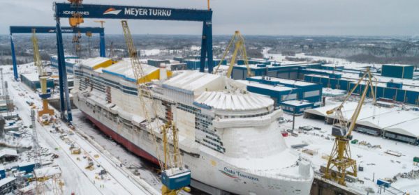 De nieuwbouw van Costa Cruises, het 185.000 GT cruiseschip op LNG, Costa Toscana, werd vandaag naar de afbouwpier van de scheepswerf Meyer Turku getrokken “De