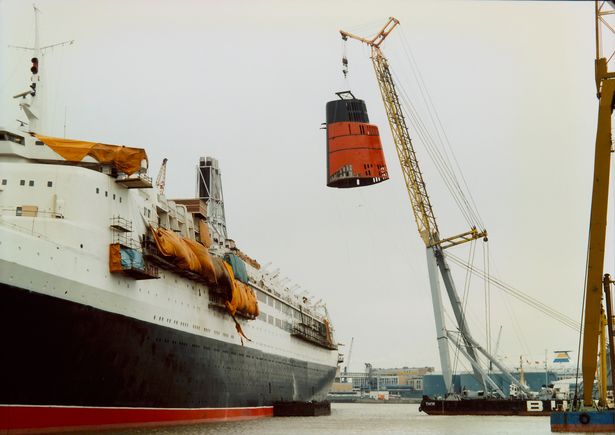 In 1986 is bij de QE2 een nieuwe schoorsteen geplaatst.
