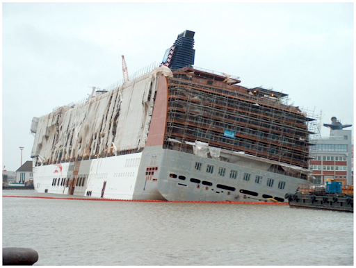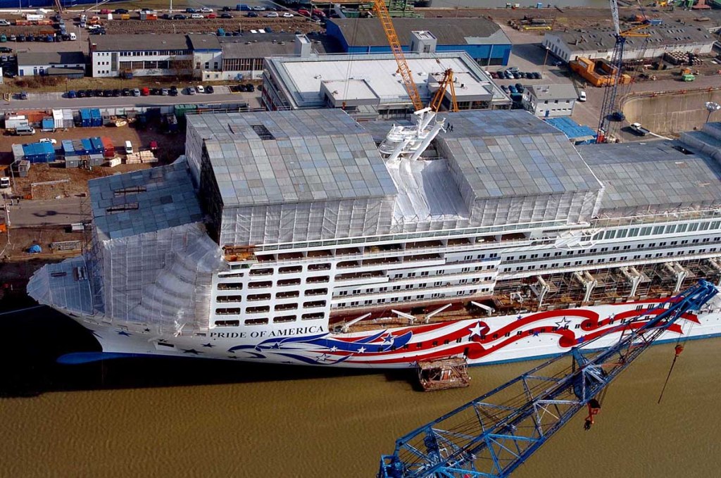 De Pride of America op de schepswerf tijdens de bouw verlengt en afgebouwd. Ook ontdanks dat door de aanslagen van 11 september het toerisme zo wat stil stond. En ook nog toen het schip half zonk.