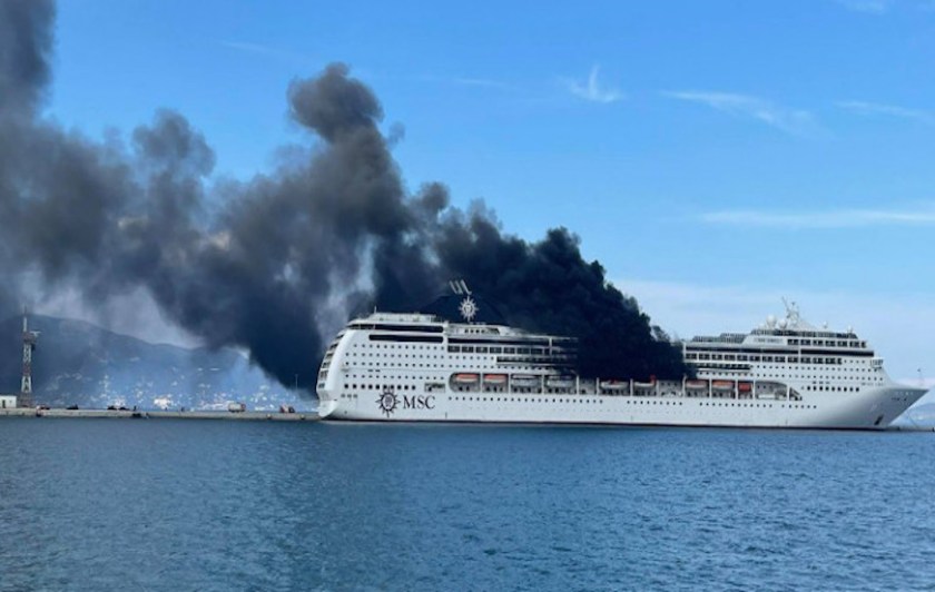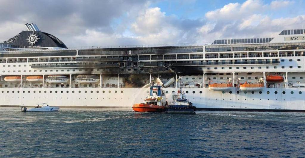 MSC Lirica, stond vandaag in brand in Corfu, Griekenland, Luca Biondolillo.