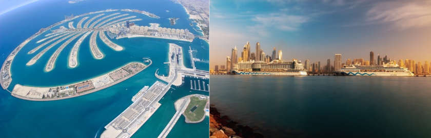 “Aangename zomertemperaturen in de winter en een gematigde vliegtijd van bijna zes uur zijn verdere onverslaanbare argumenten voor een cruise naar de Oriënt”, aldus AIDA Cruises. Dubai Cruise Terminal AIDAprima