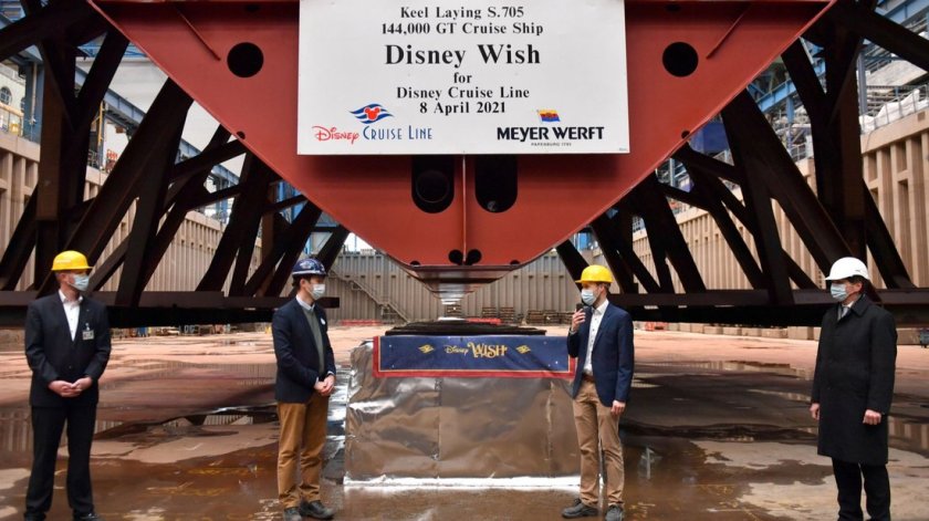 De kiellegging vindt plaats wanneer het eerste blok of deel van een schip in het bouwdok wordt neergelaten en een nieuw geslagen munt als een geluksbrenger onder de kiel wordt geplaatst. Op de munt, gemaakt voor de Disney Wish, is Captain Minnie te zien, die in 2019 haar debuut maakte aan boord van de Disney Cruise Line-schepen, als onderdeel van een reeks initiatieven gericht op het inspireren van de volgende generatie vrouwelijke leidinggevenden in de cruise-industrie. “In de maritieme traditie is de kiellegging het ceremoniële begin van het leven van een schip”, zegt Philip Gennotte, Portfolio Project Management Executive, Walt Disney Imagineering Duitsland, die de munt tijdens de ceremonie neerlegde. “Vandaag is een belangrijke gebeurtenis voor Disney Wish, en ik kan niet trotser zijn op onze bedenkers, bemanning en bemanning van Disney Cruise Line en het team van Meyer Werft in Duitsland die dit betoverende schip tot leven brengen.” Zoals al aangekondigd, zal de Disney Wish in de zomer van 2022 aan zijn eerste reis beginnen. Informatie over routes en boekingen voor het schip wordt op een later tijdstip bekendgemaakt. Disney Wish brengt het boeiende familie-entertainment, charmante verhalen en ongeëvenaarde service die alleen Disney kan bieden. Het schip wordt aangedreven door vloeibaar aardgas (LNG), een van de schoonste brandstoffen die er zijn. Met ongeveer 144.000 GT en 1.250 gastenhutten wordt het schip iets groter dan de Disney Dream en Disney Fantasy.