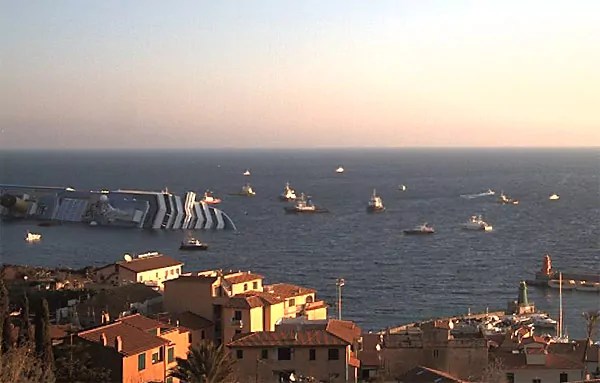 Ook was er sinds dag 1 een camera op Giglio met de Costa Concordia in beeld.