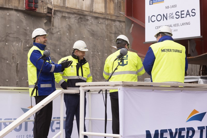 Tijdens de ceremonie werden de teams achter de bouw van Icon vergezeld door Jason Liberty, president en CEO van Royal Caribbean Group; Richard Fain, voorzitter Royal Caribbean Group; Meyer Group Managing Partner Bernard Meyer; en Meyer Turku-CEO Tim Meyer.