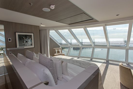 Wat krijg je niet met deze enorme cruiseschipsuite? Een balkon. De locatie is uniek, maar laat geen privé buitenruimte toe.