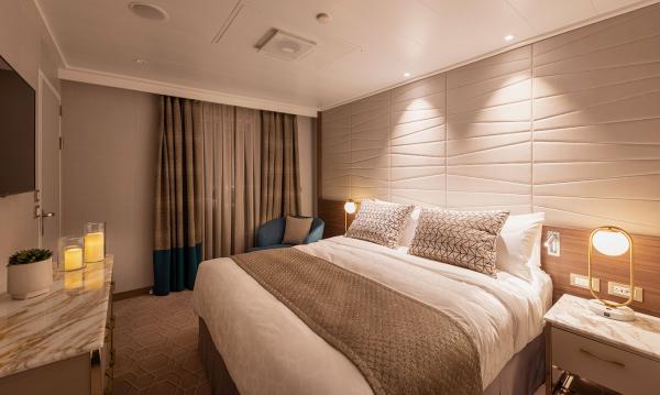 Grand Suites hebben een eigen veranda en zijn prestigieus, klassiek en verfijnd. Deze stijlvolle appartementsuites bieden de ultieme accommodatie aan boord. De Owner’s Suite is gereserveerd voor degenen die op zoek zijn naar een overtreffend niveau van ruimte, comfort en service. De aangrenzende slaapkamer, met een en-suite badkamer, biedt een eigen spectaculair uitzicht op zee.
