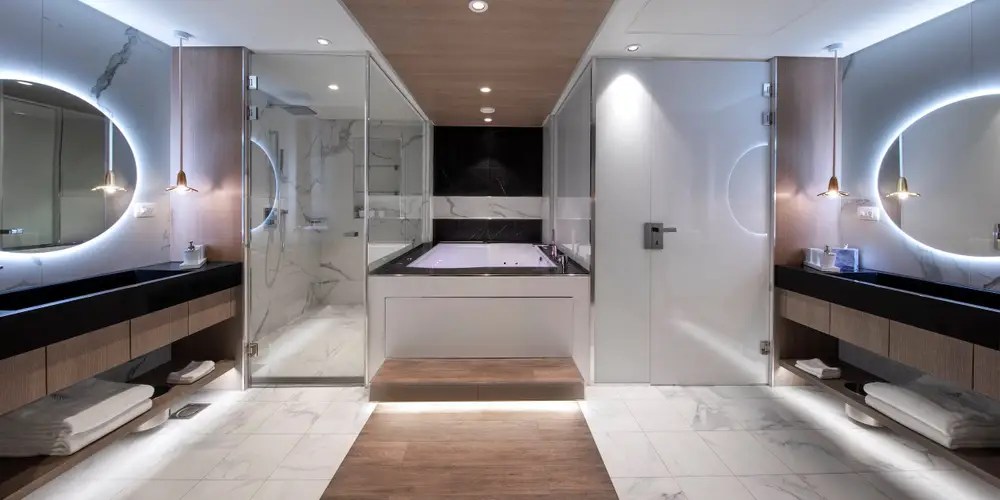 De Iconic Suite is 180 m2 groot. Deze suite bestaat 2 keer op het schip. De hoofdbadkamer is 19 m2.