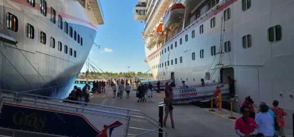Carnival Cruise Line stuurt een ander schip om de passagiers van de Carnival Freedom op te halen nadat donderdagochtend de schoorsteen van het schip in