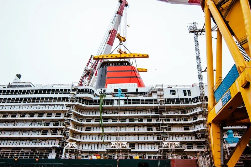 Angus Struthers, senior vice-president van Cunard, zei: “We zijn verheugd om deze belangrijke mijlpaal in de bouw van Queen Anne te markeren. De installatie van de schoorsteen is een belangrijke stap in het bouwproces en brengt het schip een stap dichter bij toetreding tot onze vloot. Voor Cunard is de kenmerkende rood-zwarte trechter een iconisch symbool van ons erfgoed en zal het een van de meest herkenbare kenmerken van Queen Anne zijn.”