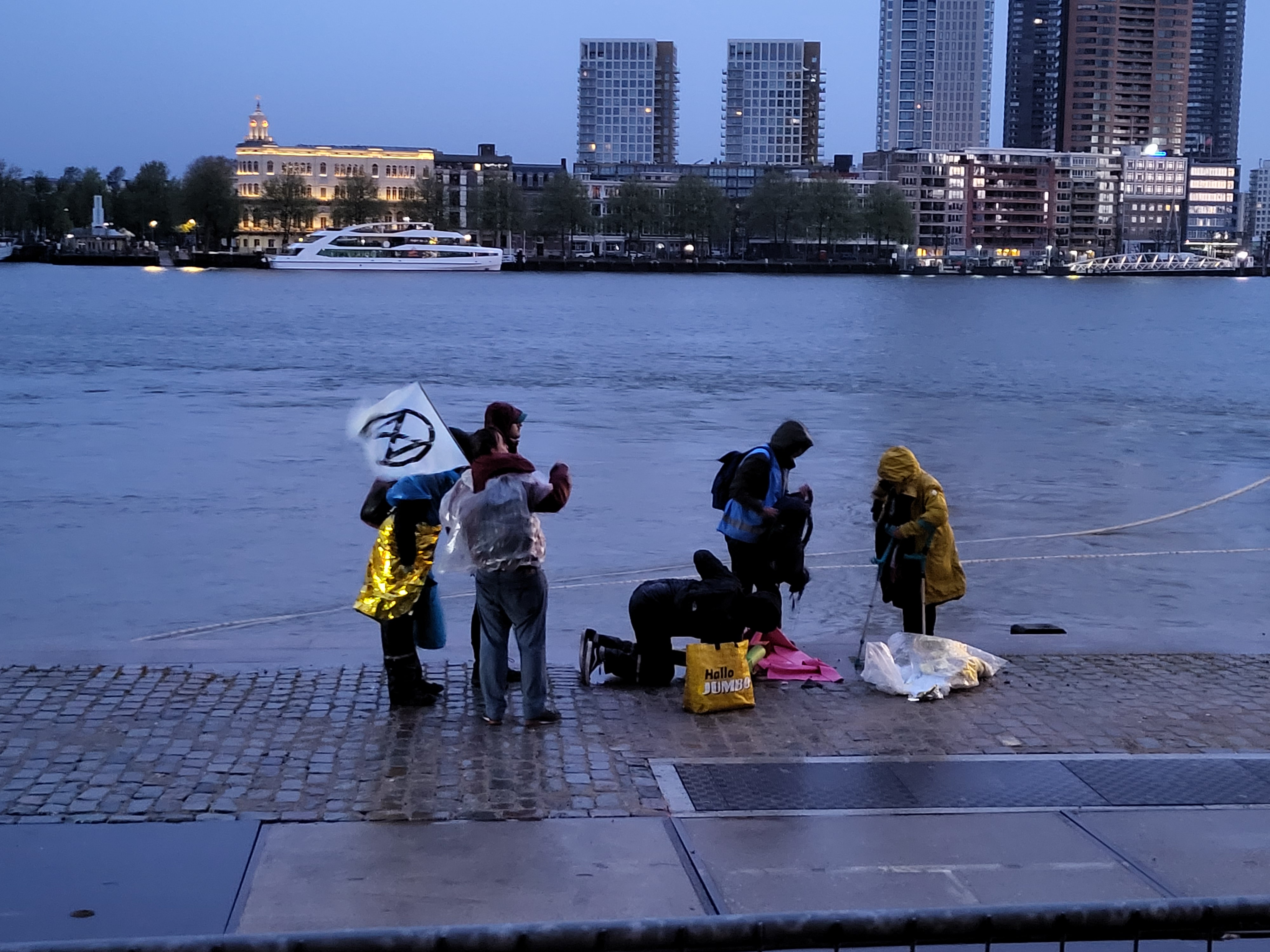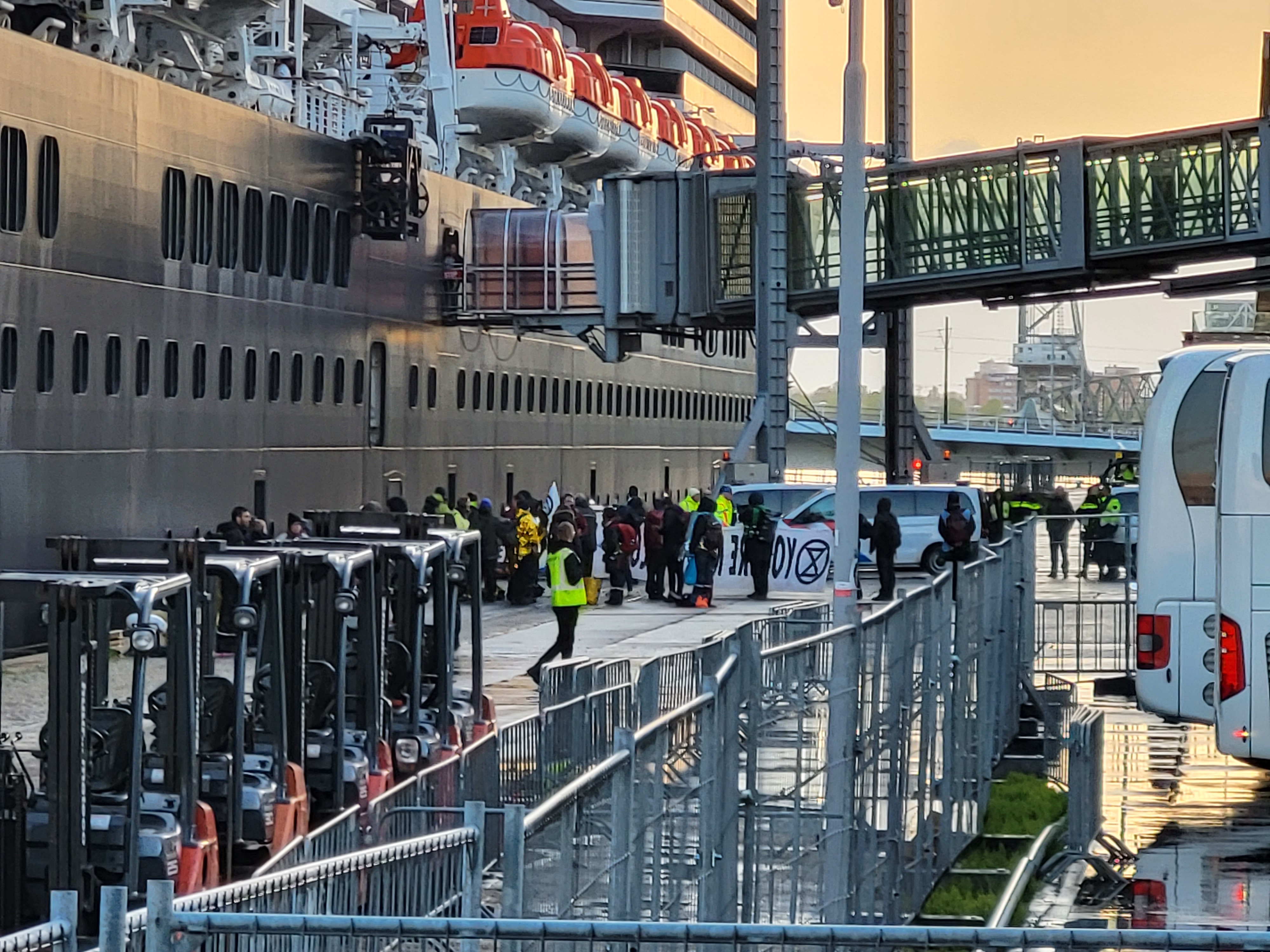 Zondag ochtend hebben Activisten van Extinction Rebellion het aanmeren van de Nieuw Statendam met een uur gehinderd. Ongeveer 50 mensen hebben met veel geluid zich laten horen aan de cruiseterminal. De politie rukte uit voorzorg met 10 autos uit. Het protest was echter vredig en rond 7 uur werden ze van het terrein gewezen. Enkelen hadden zich vastgemaakt aan de Bolder om te verhinderen dat men het schip kon aanmeren. In wind en regen heeft men met foliedeken het nog draagelijk kunnen houden.