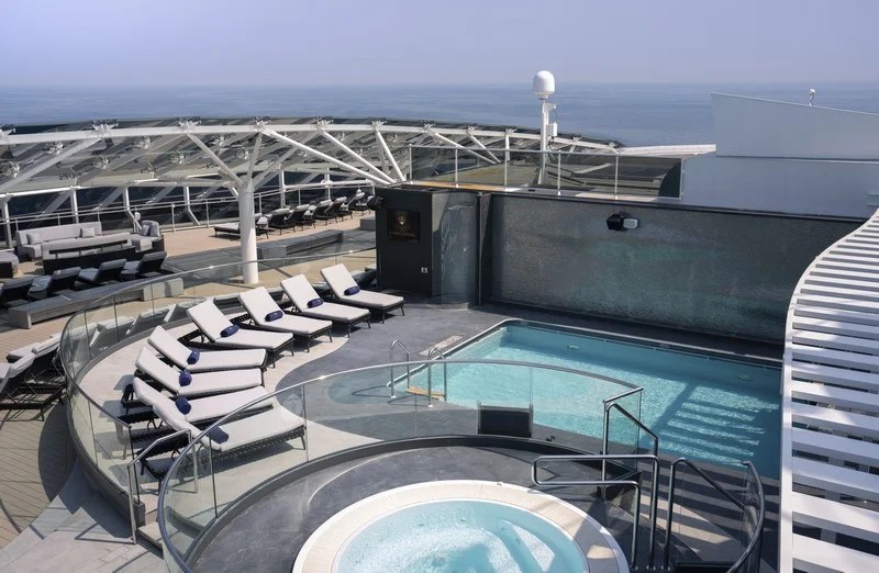 Uitgestrekt zonnedek met op het benedendek een bar en grill met een groter zitgedeelte. Het bovendek is voorzien van whirlpools en privécabana’s. Voor het eerst krijgen MSC Yacht Club-gasten aan boord van de World America de kans om te genieten van bediening aan tafel van de nabijgelegen bar en grill.