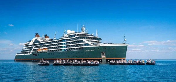 Seabourn heeft de Seabourn Pursuit officieel gedoopt tijdens een ceremonie op Ngula Jar Island, Australië, op 29 juni 2024. Met gasten in Zodiacs naast het