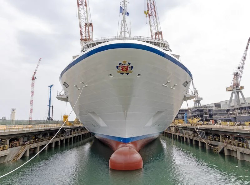 Het schip met 1.200 gasten werd uit het droogdok gehaald en naar de afbouwligplaats gebracht om te beginnen met het afbouwen van het interieur, zo maakte het bedrijf bekend.