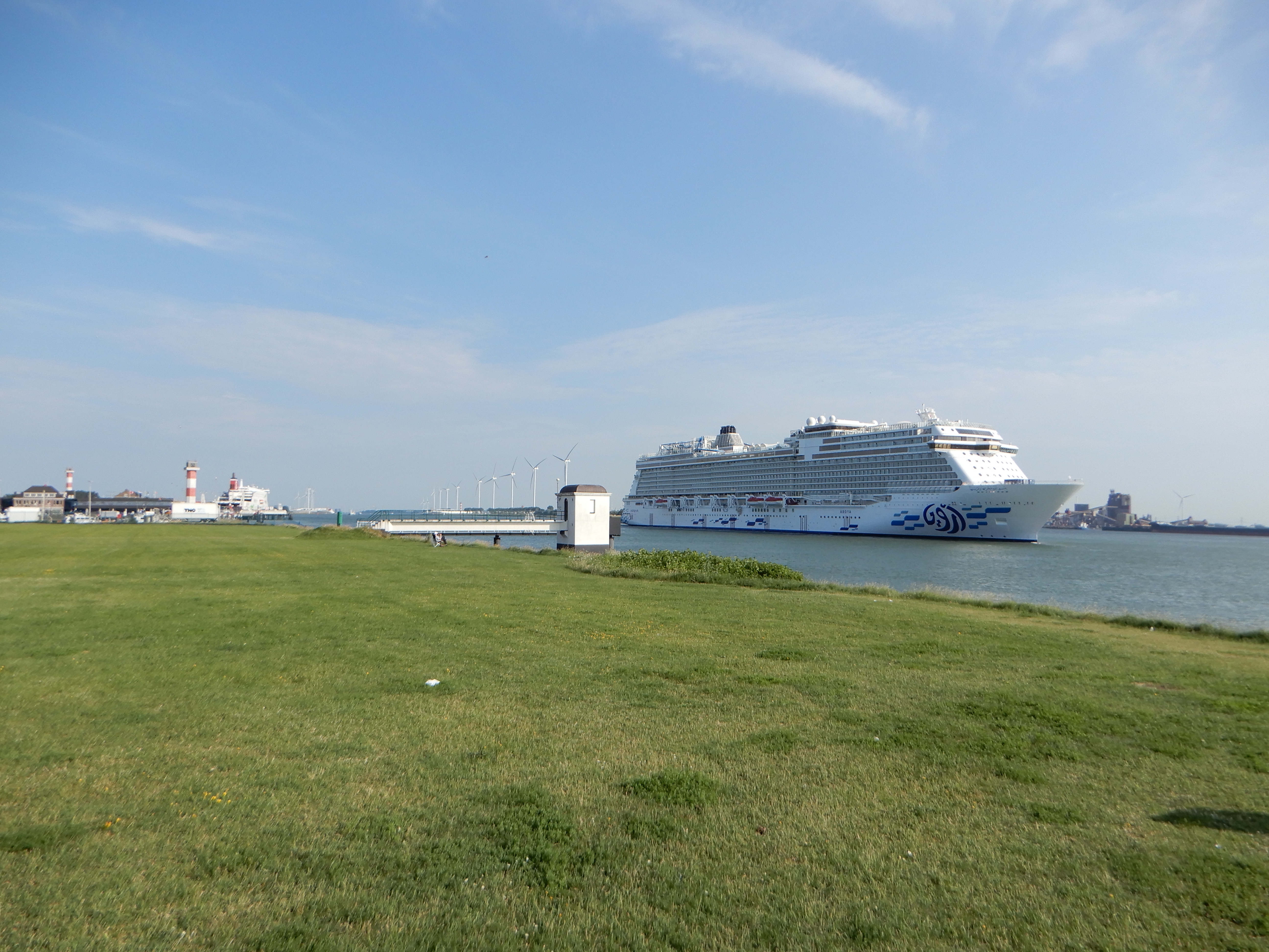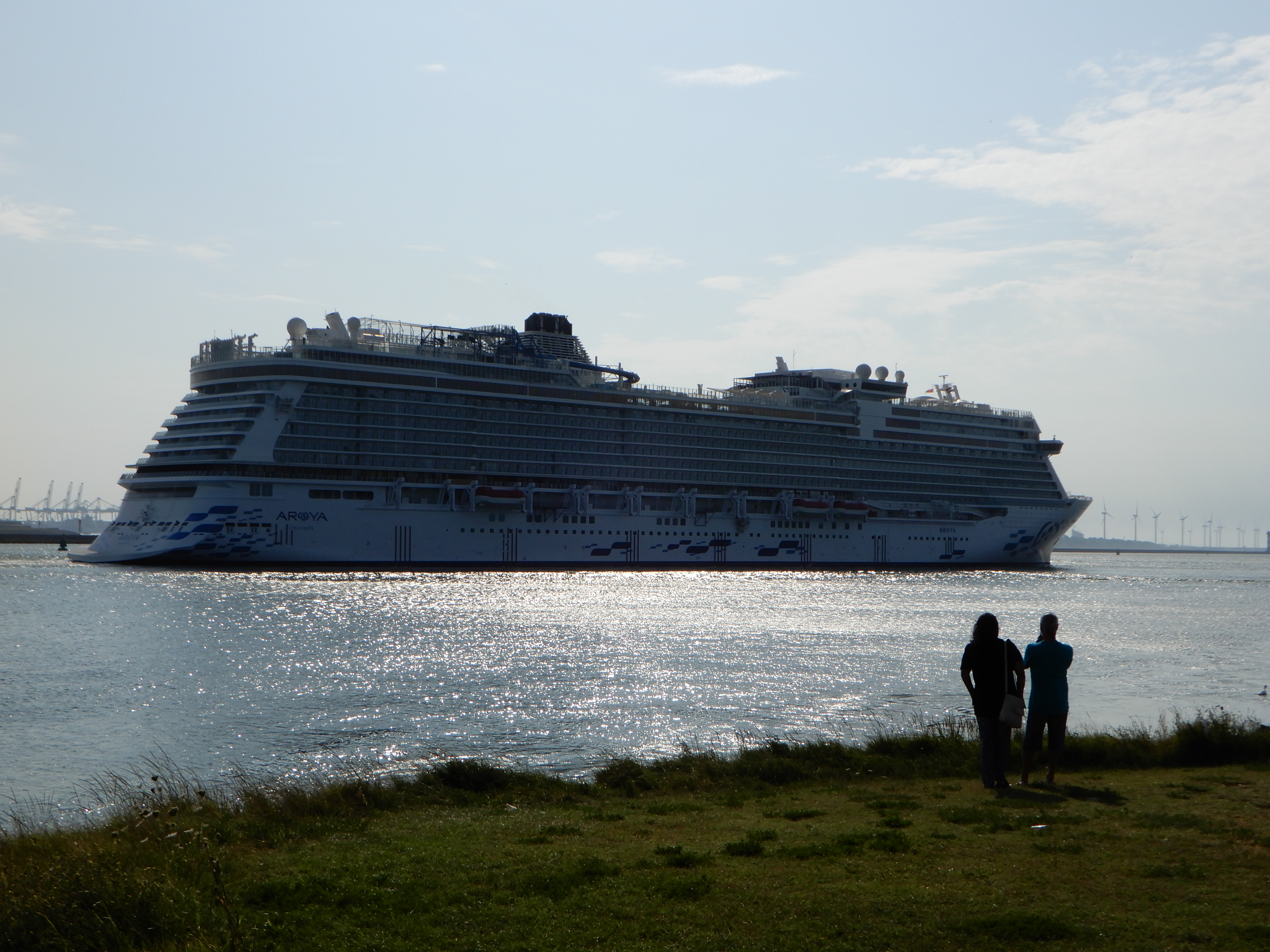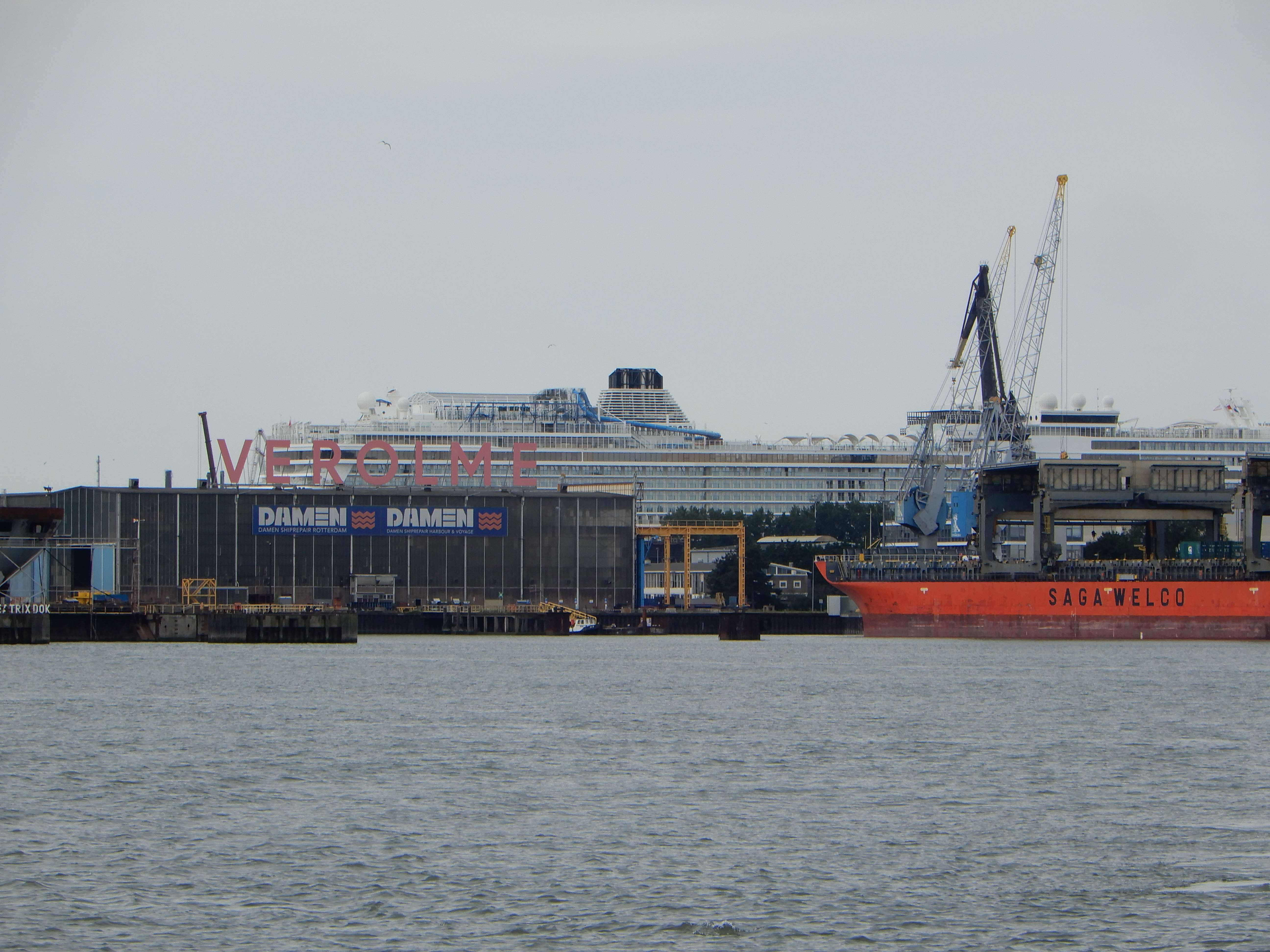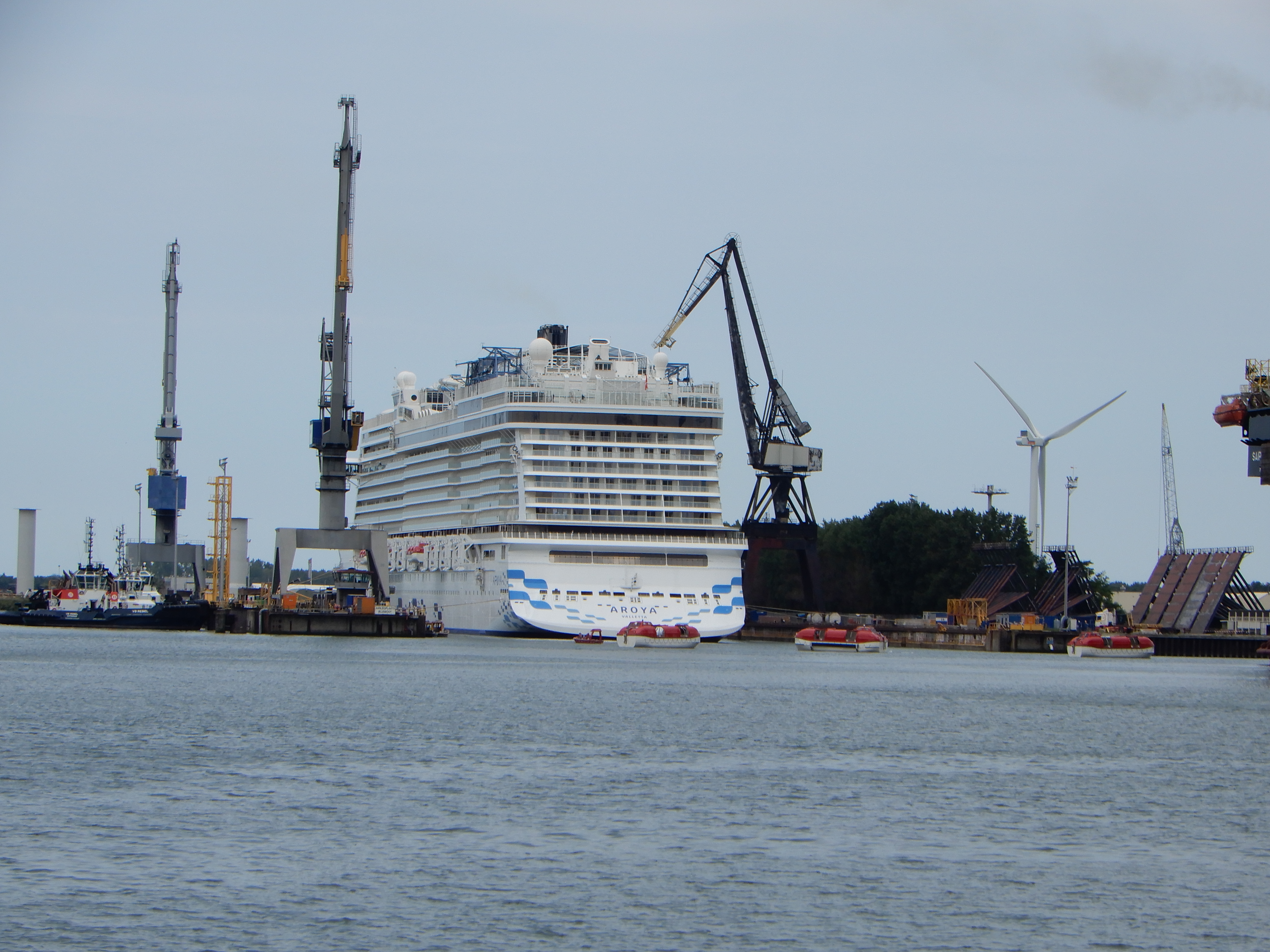 De Aroya heeft vandaag de schepswerf Damen Verolme in Rotterdam verlaten. Na twee maanden in het droogdok heeft het schip nieuwe livery gekregen voor de nieuwe rederij Aroya cruises. Het schip is nu op weg naar Bremerhaven waar het een jaar geleden, nog met de naam Manara aankwam, waar het lang aan de kade heeft gelegen. De voornamelijke Manara, die daarvoor dan weer World dream heeft gehad zal in Bremerhaven nog de laatste afwerking krijgen. er staan nog containers op de boeg, de D fenders zijn nog beschermt en het meest opvallende is dat de schoorsteen nog steeds logoloos is.