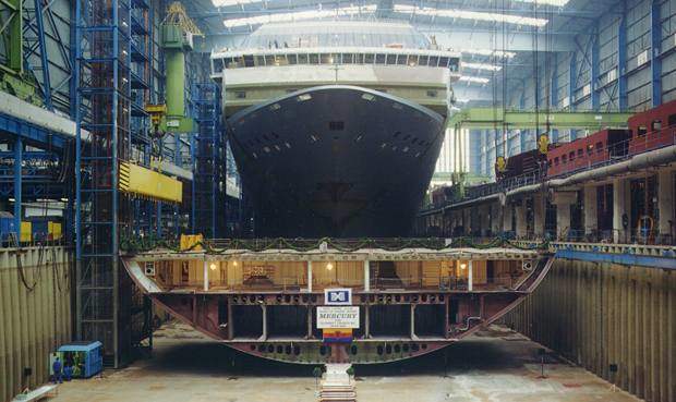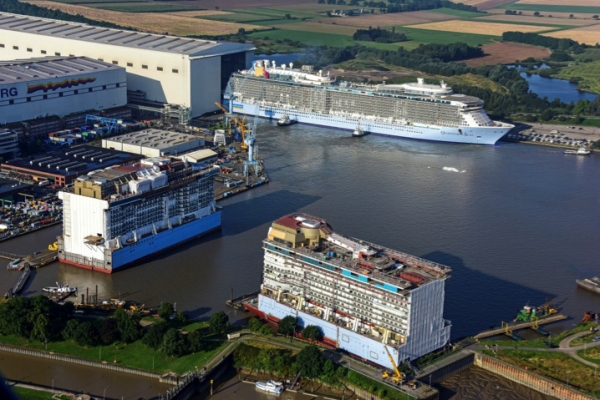 De zogenaamde Megablokken worden bij de Meyer Werft al wat langer gebouwd.