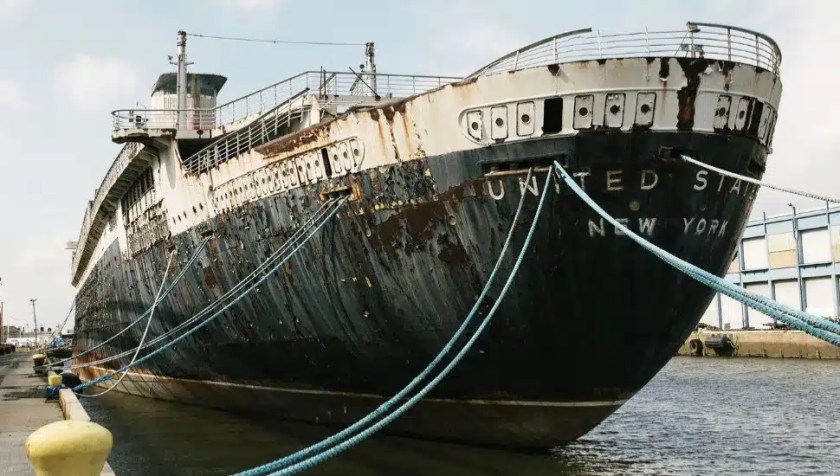 De SS United States werd oorspronkelijk in 1952 gebouwd als oceanliner en ligt sinds het midden van de jaren negentig aangemeerd op haar huidige locatie in Philadelphia.