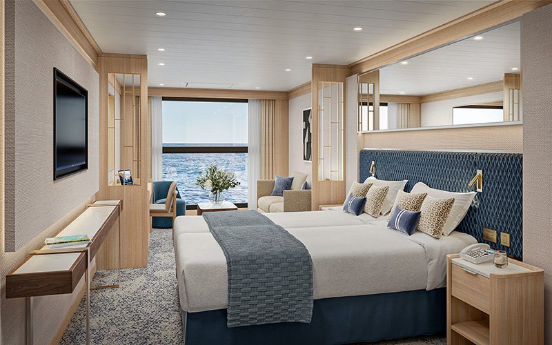 De 10 Oceanview-suites van het schip zijn voorzien van inloopdouches met mozaïekglas en omvormbare queensize bedden. Alle suites zijn uitgerust met een volledig gevulde minibar, interactieve tv, kluis en extra voorzieningen, aldus het bedrijf. De hoogste suitecategorieën – Horizon, Star, Classic en Deluxe – worden geleverd met extraatjes zoals een Illy-espressomachine, Canapes-service en verse bloemen.