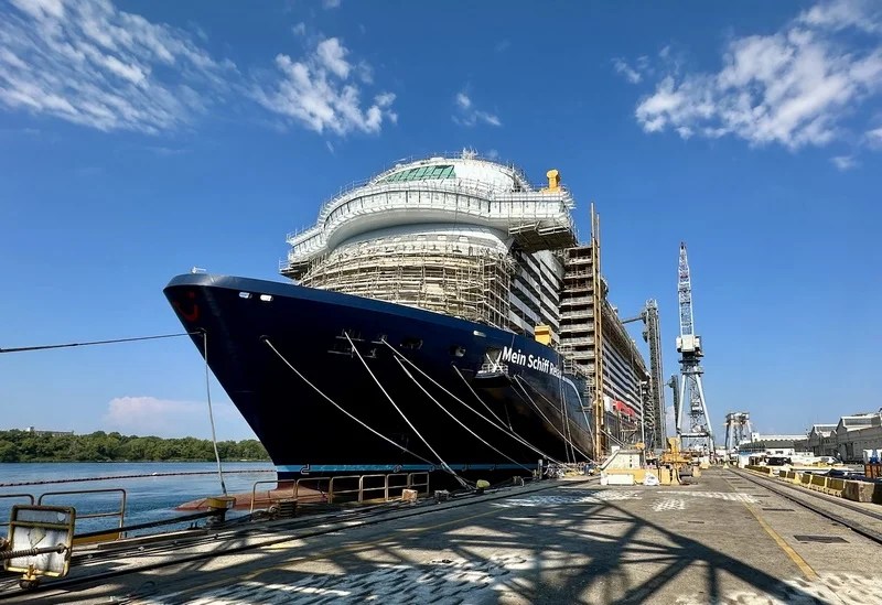 De bouw van de nieuwe Mein Schiff Relax van TUI Cruises vordert gestaag op de Fincantieri-scheepswerf in Monfalcone, Italië.