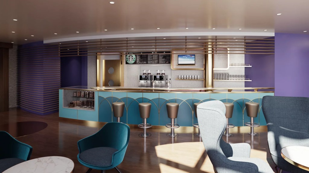 Het AIDAdiva-theater met veel omliggende bars krijgt een nieuw ontwerp. AIDA Cruises belooft nieuwe, uitnodigende zitplekken en een nog meer feel-good sfeer. Toen de AIDA Evolution werd aangekondigd, werd een foto gepubliceerd van een gerenoveerde bar, wat Cafe Mare in het Theatrium op dek 10 lijkt te zijn.