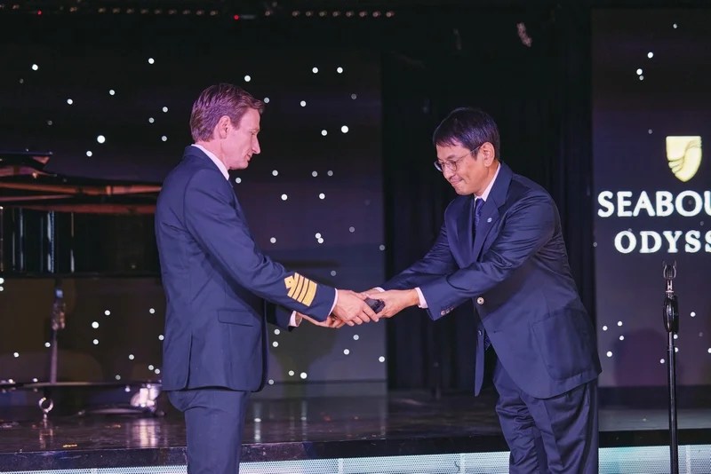 “Het was een eer en een voorrecht om een van de kapiteins van dit geliefde cruiseschip te zijn, en ik voel me vereerd om haar officieel over te dragen aan Mitsui Ocean Cruises, waarmee we een nieuwe reis op volle zee beginnen,” zei kapitein Radev van Seabourn Odyssey, die aan boord begon als veiligheidsfunctionaris voor het eerste seizoen van het schip in 2009.