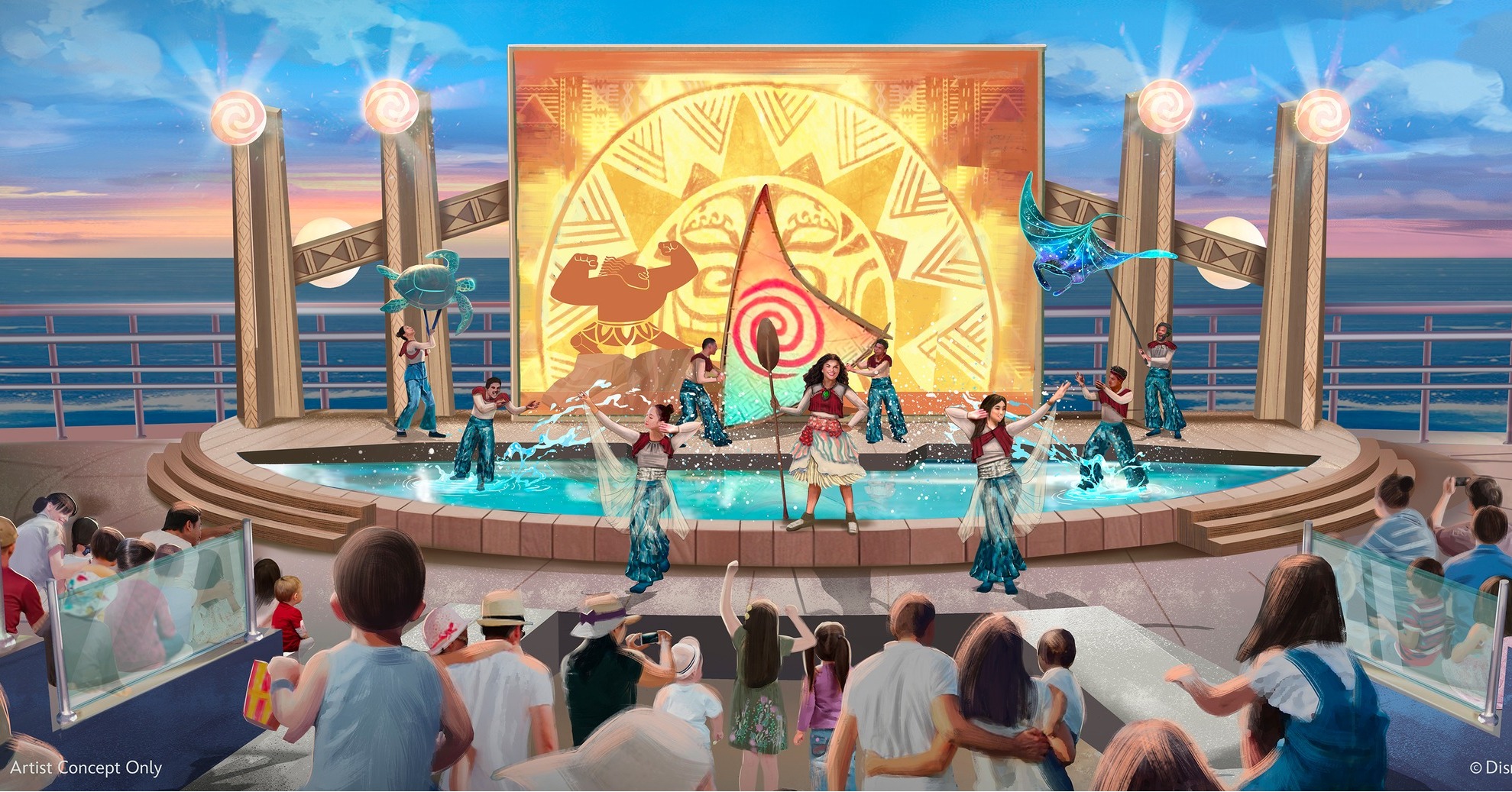 “Disney Seas the Adventure“, dat in 2022 debuteerde op de Disney Wish, zal het Walt Disney Theater-podium van Disney Adventure sieren en gasten meenemen op een muzikale reis door geliefde verhalen met iconische Disney-liedjes en -personages.
