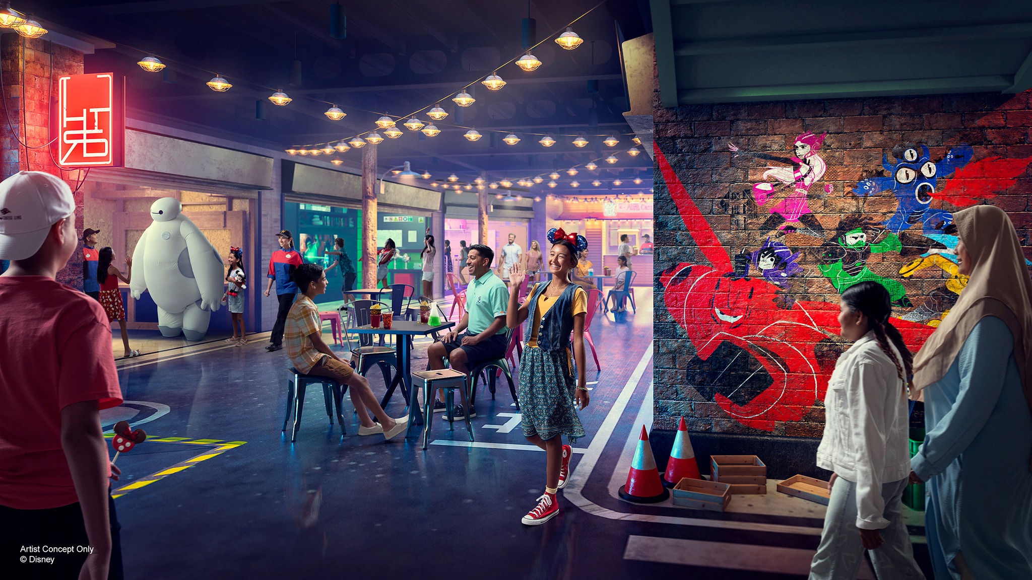 Deze dynamische ruimte, ontworpen als een bruisende straatmarkt, zit boordevol interactieve arcadespellen, activiteiten, winkels, bioscopen en meer. In San Fransokyo Street vinden gasten Big Hero Arcade, een dynamische familie-gaminglounge.