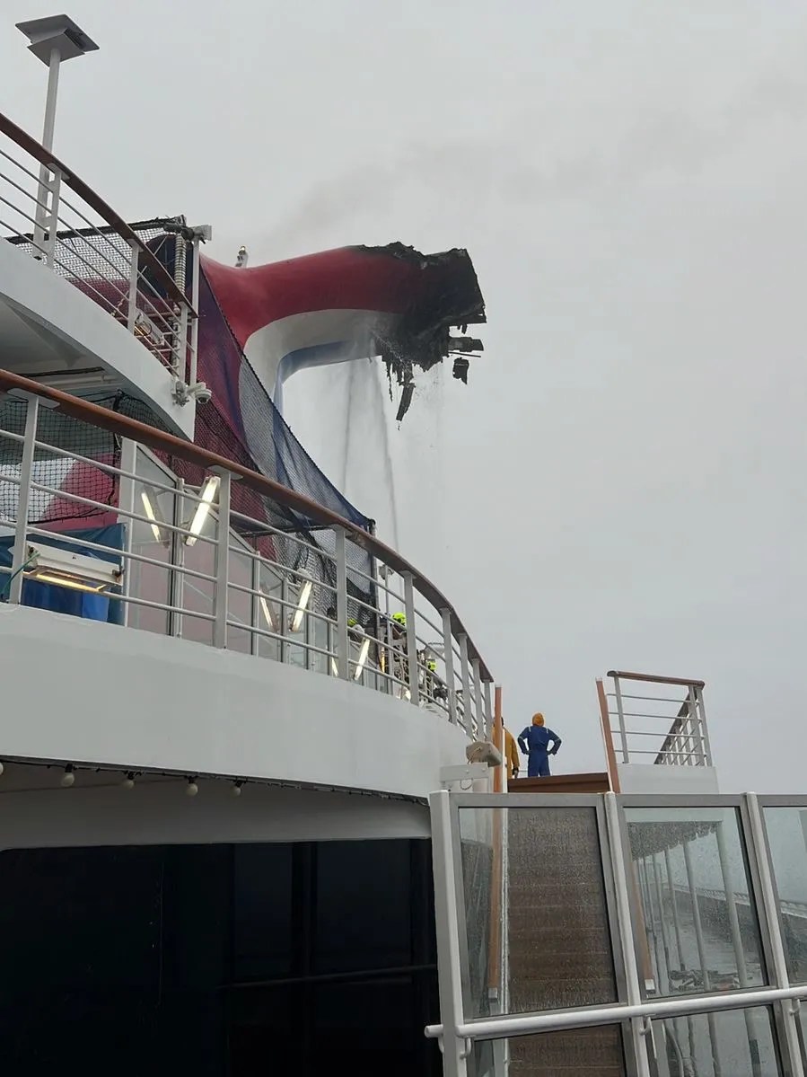 De Carnival Freedom kreeg zaterdagmiddag een brand tijdens het varen bij stormachtig weer op de Bahama’s.