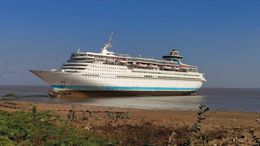 Het schip met 1.400 gasten vaart onder de vlag van de Comoren en zal nu in India worden ontmanteld, waarmee een carrière van veertig jaar wordt beëindigd.