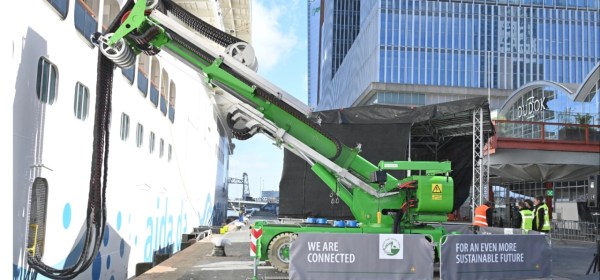 Première in Rotterdam: AIDAnova is het eerste cruiseschip dat in Nederland met het nieuwe walstroomsysteem werd aangesloten In Rotterdam is het eerste walstroomsysteem voor cruiseschepen