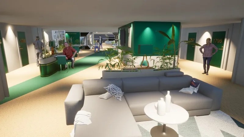 “Korte paden aan boord en aangepaste gangbreedtes, die sociale interactie mogelijk maken en de passagiersstroom en oriëntatie aan boord vergemakkelijken, zijn extra kenmerken van het schip.