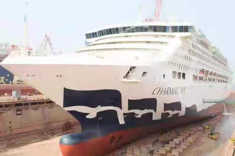 De Dream van Tianjin Orient International Cruise Line heeft onlangs een routinematig droogdok ondergaan op de scheepswerf Qingdao Beihai Shipbuilding Heavy Industry in Qingdao, China.