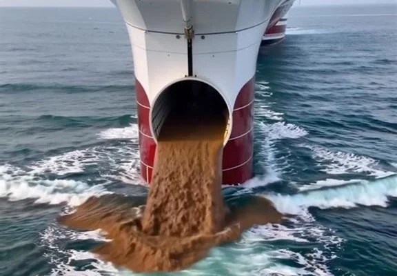 En ten derde: redelijk aan het einde van de video zie je een schip wat “schijnbaar” vuil water aan het dumpen is.