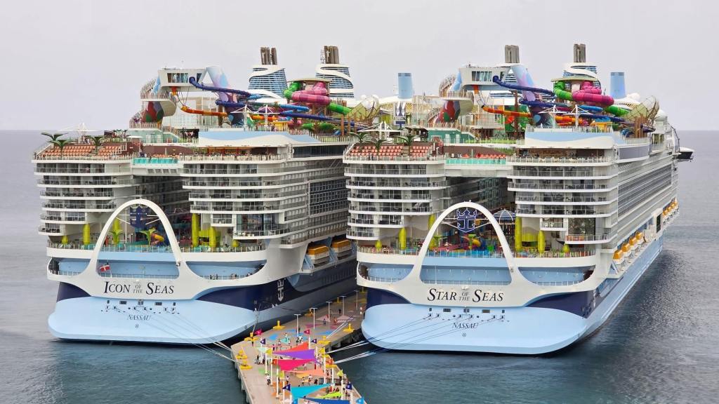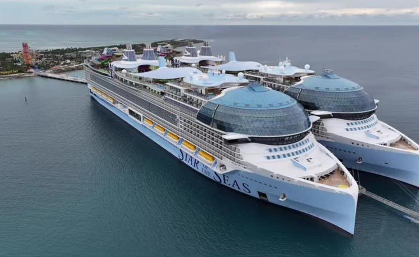 Twee van ’s werelds grootste cruiseschepen, de Star of the Seas en de Icon of the Seas, zijn zojuist aangemeerd bij CocoCay, de privébestemming van Royal Caribbean op de Bahama’s!