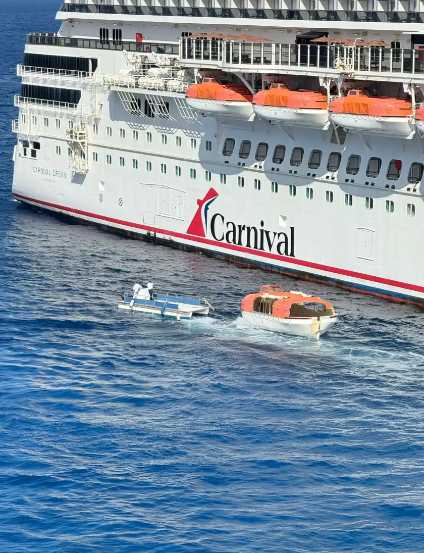 “Het team op de Carnival Dream voerde een onbemande test uit met het neerlaten van een van de reddingsboten toen een grendel bleef haken aan een van de kabels, waardoor het schip aan één kant hing en vervolgens in het water eronder viel”, aldus een woordvoerder. “Niemand raakte gewond.”