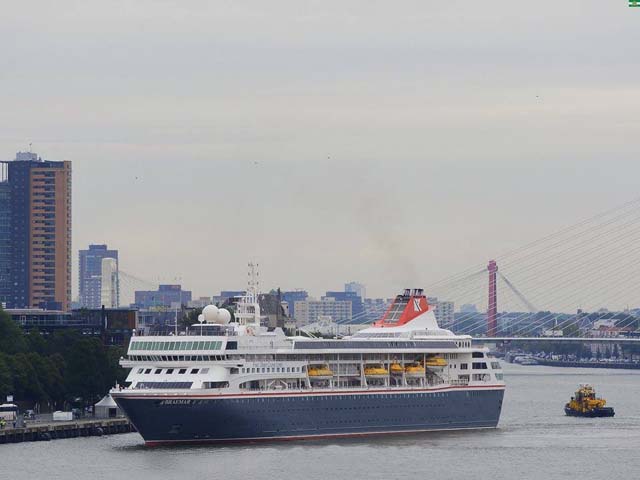 Op was het schip eindelijk vertrokken voor haar wereldcruise.