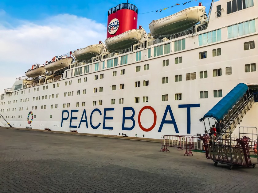 Sinds de oprichting in 1983 heeft de in Shinjuku, Tokio gevestigde organisatie meer dan 100 reizen gelanceerd. Deze cruises, de belangrijkste activiteit van de Peace Boat-organisatie, worden gemiddeld minstens drie keer per jaar uitgevoerd. Peace Boat, door de San Francisco Chronicle beschreven als een “drijvende universiteit van soorten”, biedt educatieve mogelijkheden aan boord, met conferenties die verband houden met wereldwijde evenementen. Ze bieden ook humanitaire hulp aan hun verschillende haltes en bezoeken lokale organisaties.