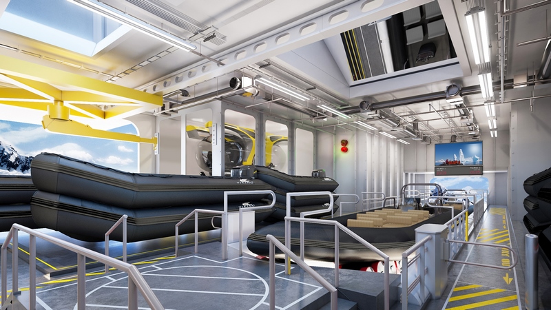 The Hangar: een primeur in de branche, The Hangar biedt echt comfort voor expeditiecruises. Deze ingesloten jachthaven aan boord maakt de lancering van kleine rondvaartboten mogelijk door de meerdere deuren van het schip. De meest innovatieve functie van de Hangar is een 85 meter lange trailerhelling waarmee gasten RIB’s kunnen beginnen vanaf een vlak, stabiel oppervlak in het schip, beschermd tegen wind en golven. Er is ook een FerryBox, een set instrumenten die continu gegevens verzamelen en weergeven over de waterkwaliteit, zuurstofgehalte, plankton-samenstelling en meer.