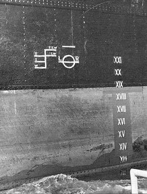 Het huidige vrijboord kan op elk moment van buitenaf worden gecontroleerd met behulp van de markeringen op de romp van het schip. Het gespecificeerde vrijboord, dat tenminste moet worden nageleefd, zorgt voor voldoende drijfvermogen om het schip in elke zeetoestand stabiel te houden.