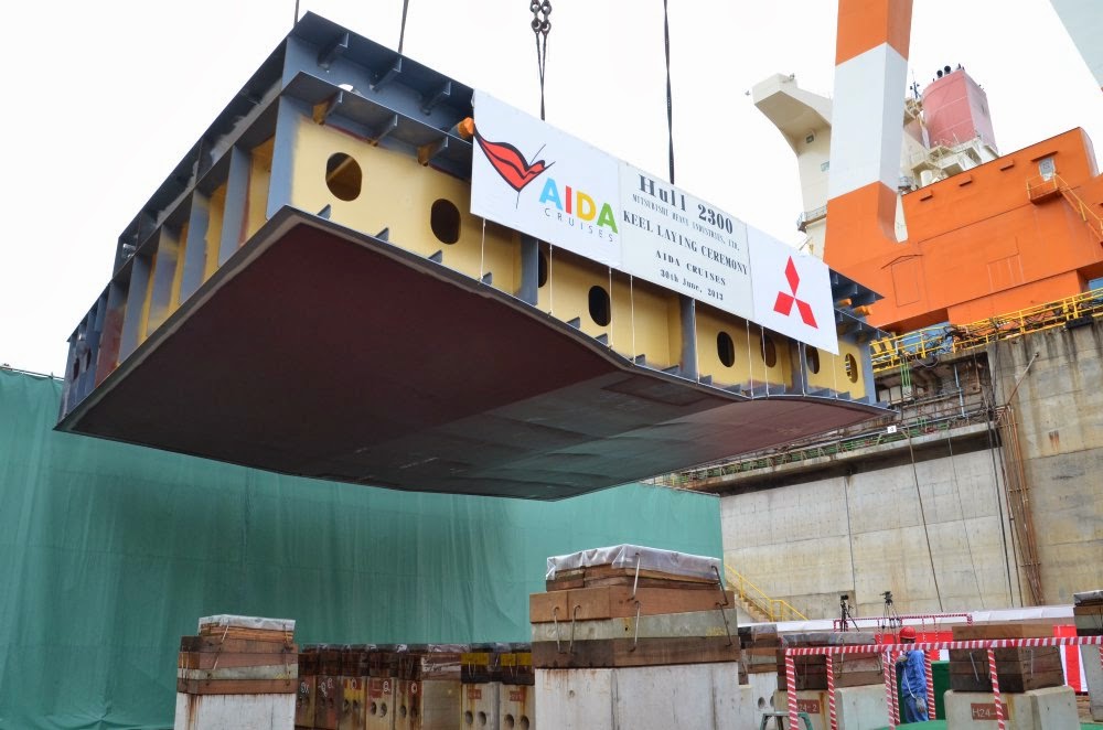 Op verliet AIDAprima de scheepswerf in Nagasaki in de richting van Hamburg na te zijn overgedragen aan AIDA Cruises.